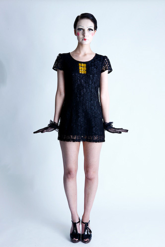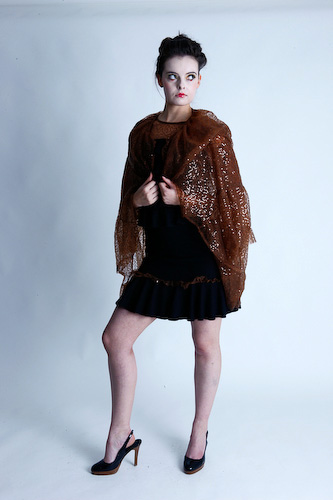 (24) Chocolate lace cloke and Black matched long sleeves Dress