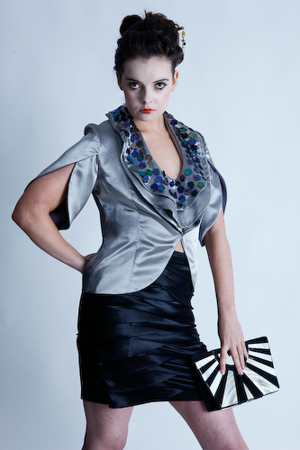 (27) Silver detail collar Top and Black exquisite pencil Skirt