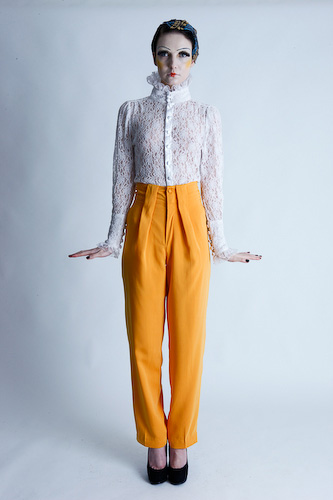 Sample trousers is available to MAX measurement: Waist 25.5 Hips 35